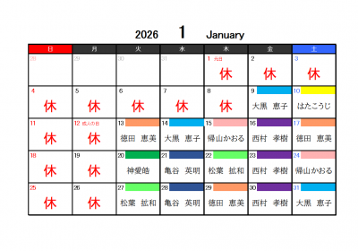 1月営業日、演奏のご案内です。