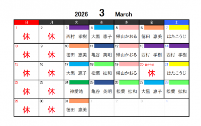 なお、2日、9日は臨時休業をいただきます。ご迷惑をおかけいたしますが